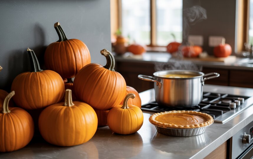 В ресторане "Ферма" деревенский суп из тыквы с копчёным лососем и свежей зеленью подают в круглом чёрном хлебе. Цена за порцию – от 990 руб. Если вы не наелись (что вряд ли), то ищем в меню котлеты из краба с тыквенным гратеном, цена за порцию – от 1900 руб. Адрес: Финляндский пр-т, 1.