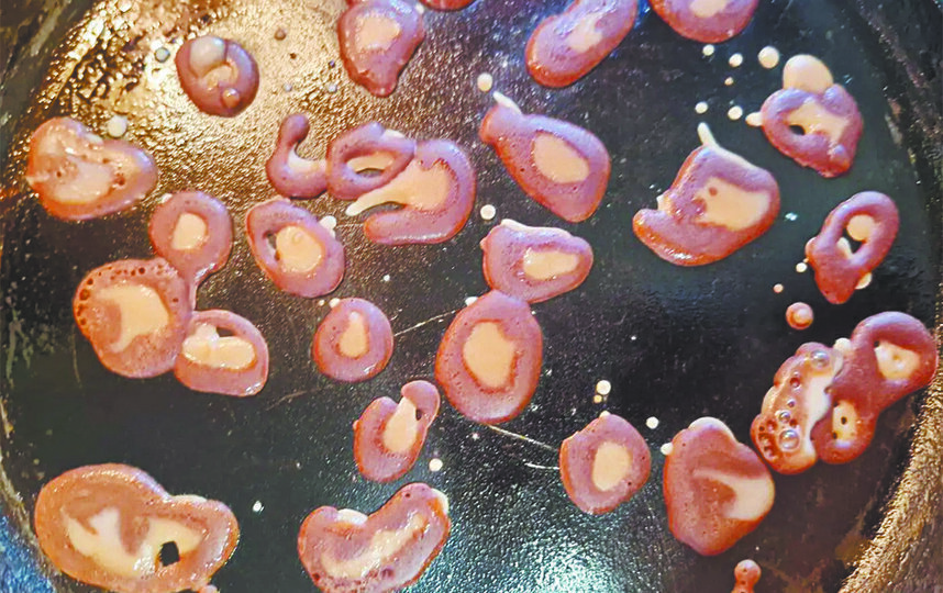 Для леопардовых блинов тесто нужно разделить на три неравные части.