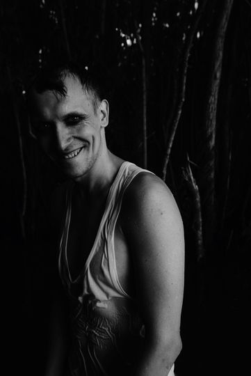 — Хотелось снять грань безумия и вменяемости, — говорит автор необычной съёмки. — На фото изображён актёр. Возможно, его признали, а может быть и нет. Он заигрался или просто вжился в образ? Заплыл в свой омут, откуда уже нет пути обратно, или просто мастерки играет роль?! Кто как не актёр мог сыграть «актёра»?!