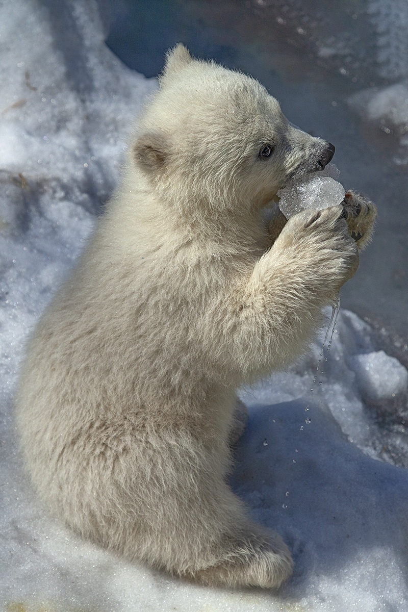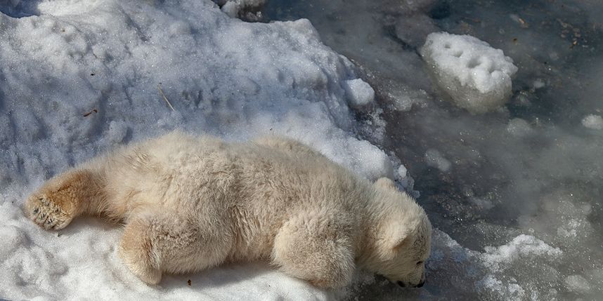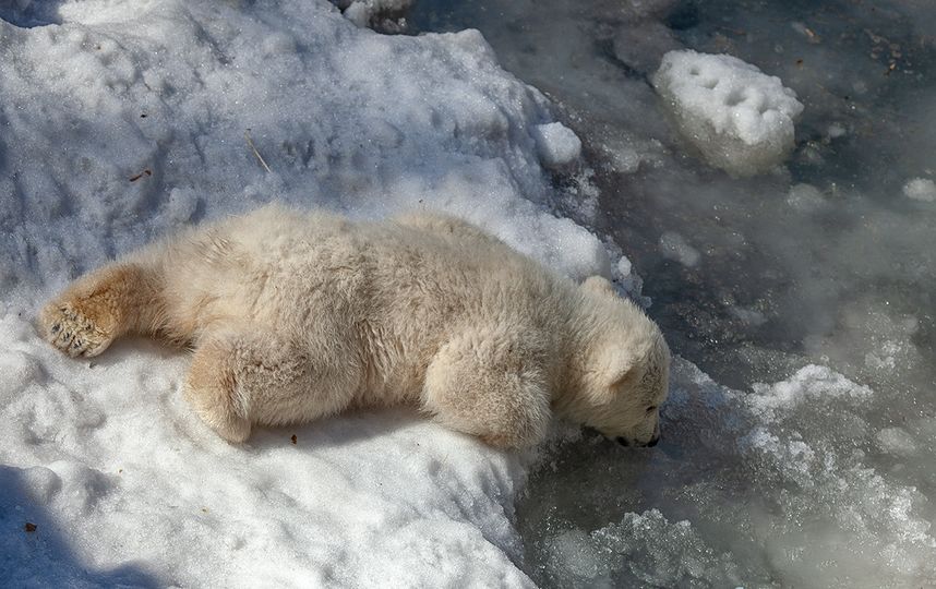 Новосибирский зоопарк им. Р. А. Шило налил воду в бассейн к белой медведице Герде и её детёнышам-двойняшкам.