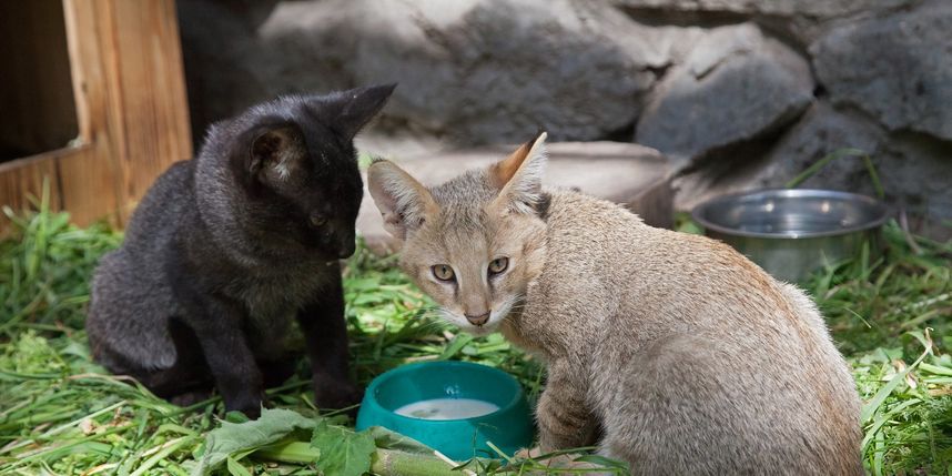 Известно, что камышовые коты бывают черного окраса, однако такие особи встречаются редко. Самец по имени Шензен (Нуар) стал первым черным хаусом в коллекции зоосада.