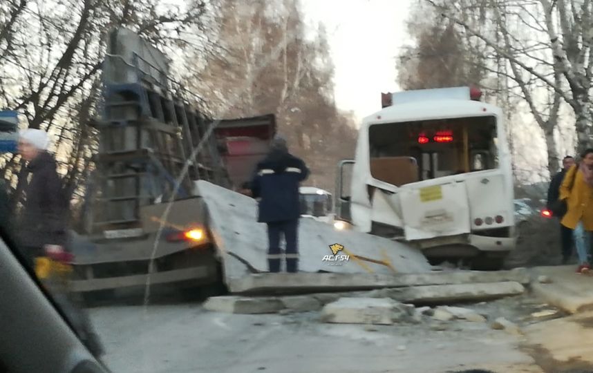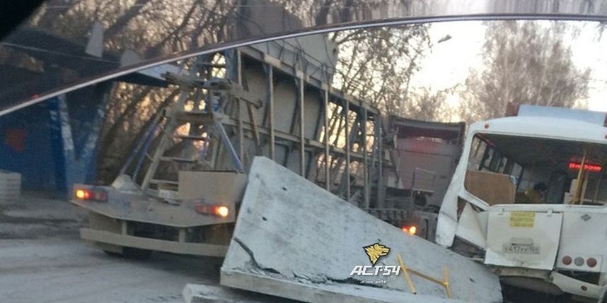 - На Бронном переулке, около остановки "Разъезд", рухнувшая с тягача Scania бетонная плита, выбила заднее стекло и смяла заднюю часть у автобуса ПАЗа, ехавшего по маршруту №227. Осколки конструкции разлетелись по проезжей части и полностью заблокировали проезд транспорта на этом участке, - поделился очевидец в группе Новосибирской службы эвакуации АСТ-54 в соцсети "ВКонтакте".