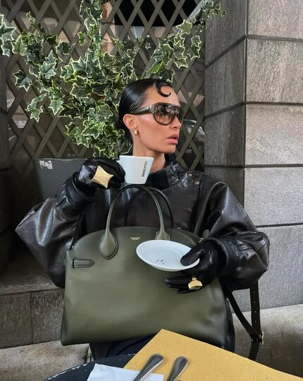 – Используйте их как цветовой акцент: например, яркие голубые или зелёные перчатки в образе из ахроматов (чёрный, белый) или нейтральной базы (бежевый, молочный, коричневый). Прозрачные перчатки добавляйте, когда хотите придать образу женственности или лёгкого налёта ретро.