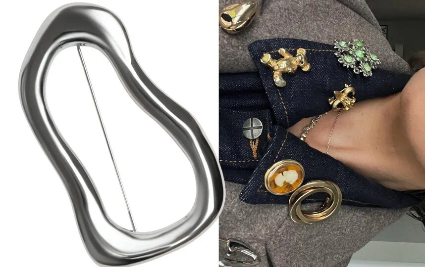 – В случае с лацканом, воротничком или карманом брошь может быть не одна – разные формы и даже разный цвет металла объединяем общей стилистикой. Чтобы избежать нафталинового эффекта, вместо цветочков и стрекоз возьмите металлическую абстрактную форму: каплю, звезду или полумесяц, – посоветовала персональный стилист Анна Притчина.