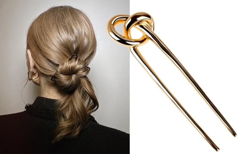 – Первый вариант – минималистичная французская шпилька, металлическая без декора (выглядит просто как два зубчика от вилки). Придаёт образу женственность, лёгкость, отлично работает и в спорт-шике, и в бохо, с офисным костюмом, – пояснила персональный стилист. – Второй вариант – тренд на азиатскую эстетику. Китайская шпилька выглядит как палочка с украшением на конце: камнями, бусинами, жемчугом, иногда подвеской. Ею удобно заколоть пучок. Летом такая причёска будет классно сочетаться с расслабленными городскими или пляжными сетами: широкими брюками, накидками в духе кимоно, расслабленными рубашками и блузами на запах.