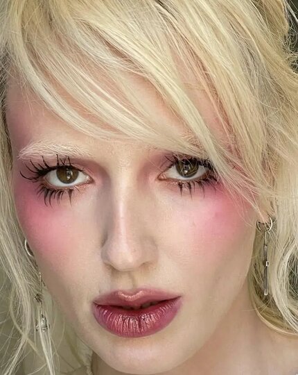 Макияж здесь – обязательная часть образа. Выразительные глаза или губы помогут выдержать баланс и не потеряться на фоне сложных форм и принтов.