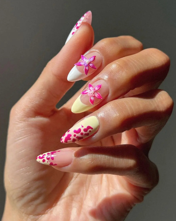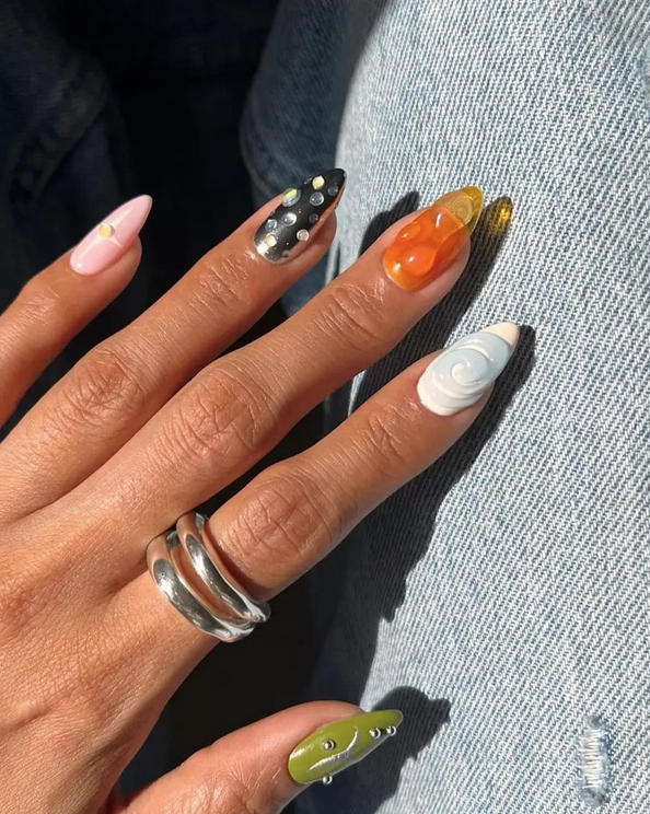 Яркие кислотные оттенки – важная часть дофаминового маникюра.