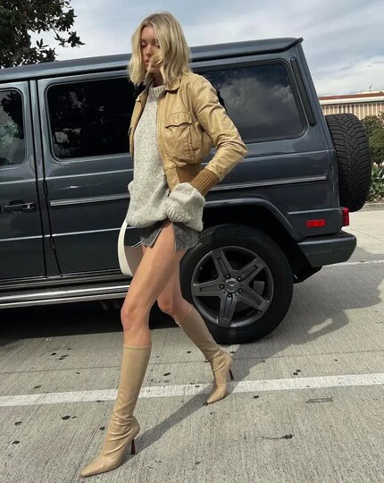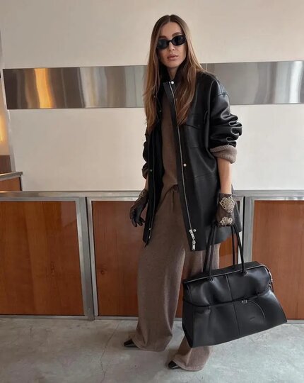 Кожаный бомбер – баланс между расслабленностью и структурой. Его узнаваемый силуэт с резинкой по низу и манжетами добавляет образу динамики, а сама кожа делает вещь более выразительной по сравнению с текстильными аналогами.