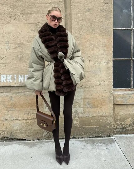 Чёрный по-прежнему остаётся классикой, но сегодня он часто выглядит слишком строго и графично. Коричневый же работает иначе: добавляет глубину, мягкость и ту самую винтажную элегантность, которая сейчас на пике популярности.