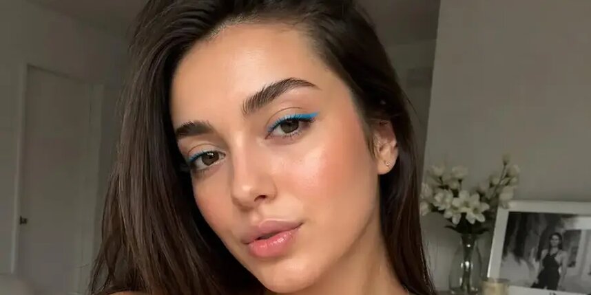 Так лазурный становится акцентом, а не спорит с остальным макияжем.