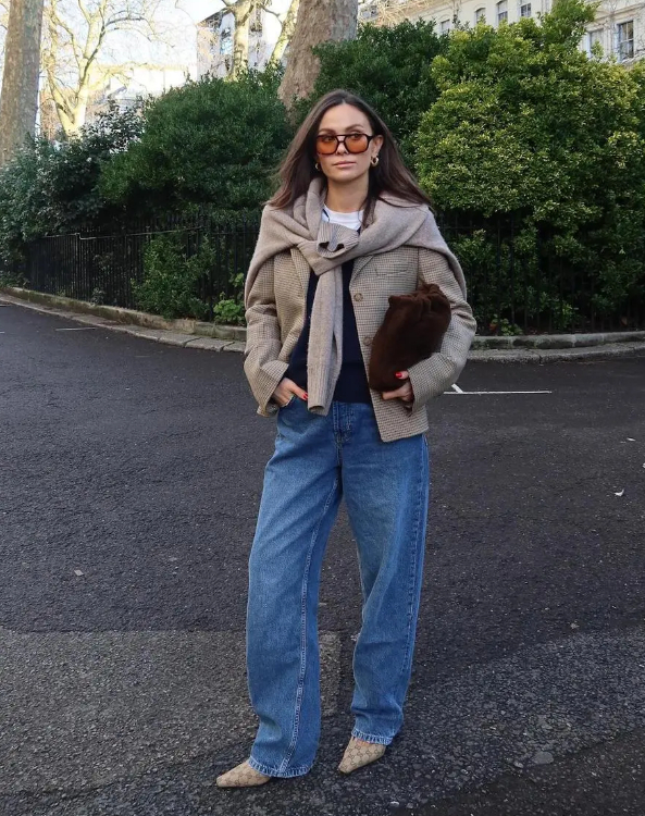 - сочетайте деним с шёлковой блузой или шерстяным пиджаком.
