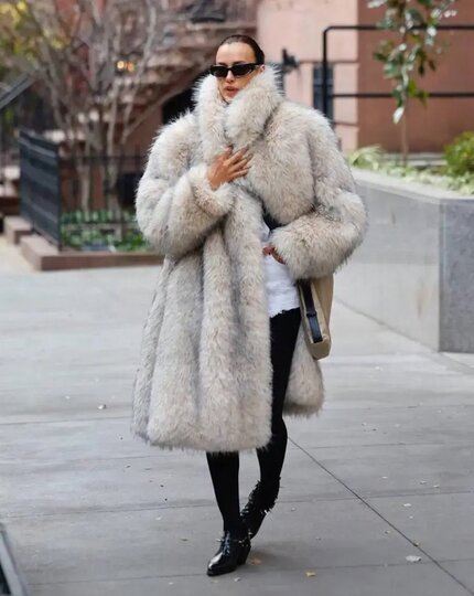 Хрестоматийный пример – легендарная шуба Кэрри Брэдшоу из сериала "Секс в большом городе", за похожими моделями на вторичном рынке модницы охотятся уже более 25 лет. К слову, совсем недавно Ирина Шейк появилась на прогулке в подобной модели авторства российского бренда.