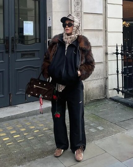 – Этот приём давно освоили модные блогеры и стилисты. Особенно удачно такая стилизация работает в повседневных образах с пальто, пуховиками или шубами в расслабленном стиле спорт-шик, – подчёркивает эксперт.