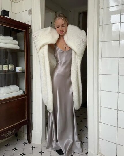 Атласные, шифоновые и тонкие хлопковые платья не обязаны ждать весны. Зимой они прекрасно вписываются в образы для ужинов, театров и мероприятий. Достаточно добавить плотные колготки, высокие сапоги и второй слой – жакет, кардиган или объёмный свитер.
