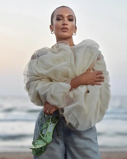 – Воздушные материалы важно "заземлять" – добавлять к ним плотные и структурные вещи. Тогда образ не выглядит слишком "хрупким", – советует стилист.
