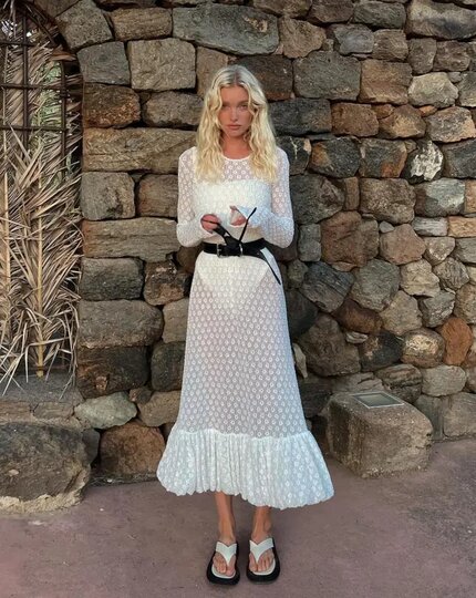 В этом сезоне кружево становится частью повседневной эстетики – спокойной, интеллектуальной и сдержанной. В фокусе ришелье, кроше и традиционные техники, переосмысленные в актуальных силуэтах.