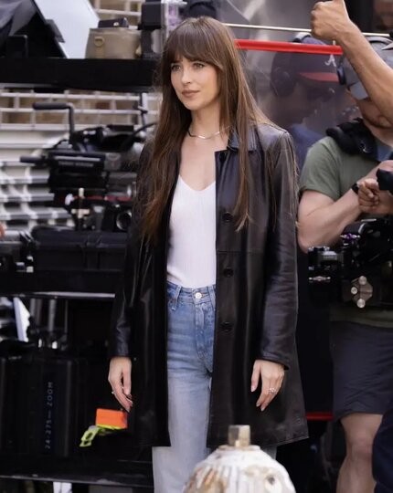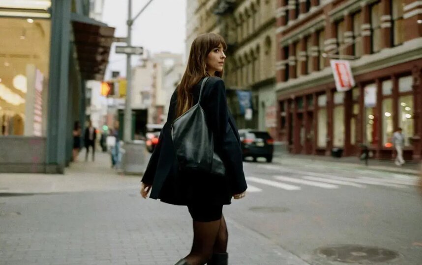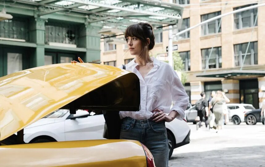 В драматичный момент героиня Дакоты Джонсон переходит к расслабленным комплектам: свободные джинсы, трикотажная майка, кожаный однобортный тренч. Такой гардероб – идеальный баланс уличного стиля и классики, особенно если добавить структурные аксессуары, подчёркивающие задуманный образ.