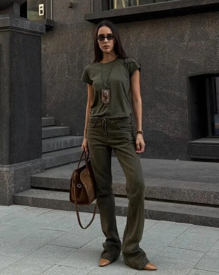 Хаки – один из самых универсальных оттенков джинс.