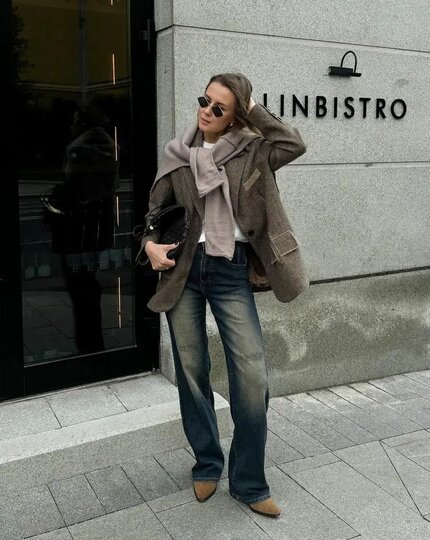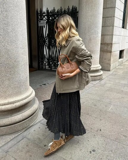 Обувь из натуральной замши – главный хит 2025 года. Она делает образ мягче, добавляет фактуры и идеально смотрится в тёплых осенних тонах: карамель, молочный шоколад, хаки. Единственный нюанс – нужна обязательная защита от влаги, так что не забудьте обработать обувь водоотталкивающим спреем.