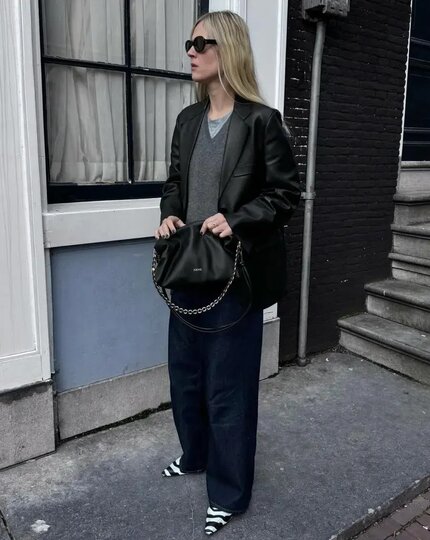 Ещё один способ добавить деликатный акцент – тиснение под кожу рептилии. Змеиный или крокодиловый рисунок делает образ выразительнее, даже если на вас простое пальто и джинсы. Лучше всего этот тренд работает в лаконичных формах: сапоги-трубы, ботильоны с квадратным мысом, лоферы.