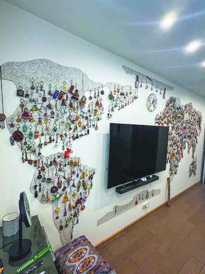 – А потом я стала делать ремонт, и выбрасывать эти брелочки мне было очень жалко. Тогда возникла идея сделать карту, – вспоминает Ирина. – Я купила на рынке обычный пробковый лист, вырезала из него континенты, прикинув размеры, чтобы, условно, Африка не получилась меньше Австралии, и прилепила клеем на отремонтированную стену. Брелоки на все континенты я старалась вешать по локациям – сейчас это сделать невозможно, потому что места просто не хватает.