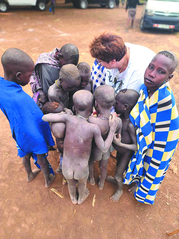 Дети одного из эфиопских племён разглядывают себя на снимках, которые сделала Ирина. Зеркал в их земляных домиках с соломенной крышей, конечно, нет, поэтому своё изображение на экране телефона они увидели впервые
