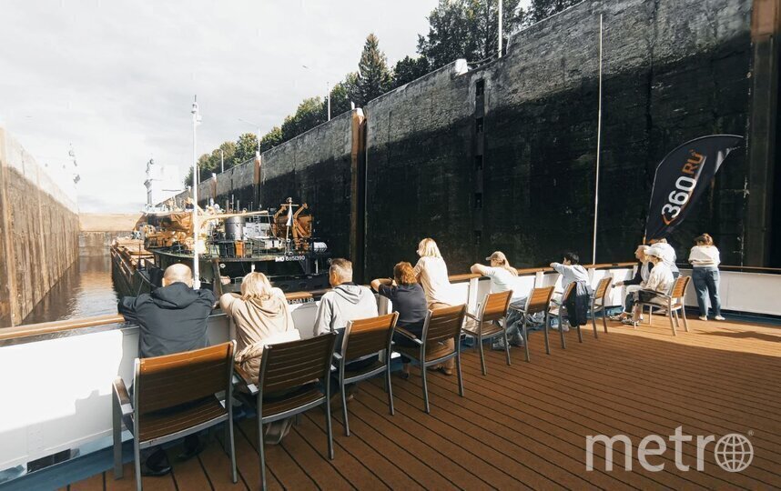 Прохождение шлюзов всегда вызывает живой интерес у пассажиров.