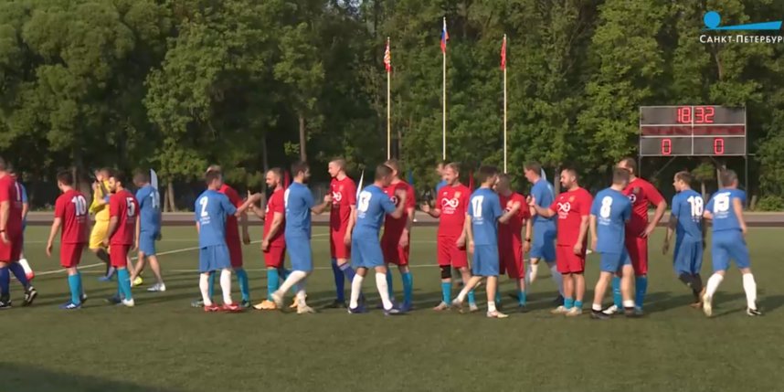 Перед игрой выступили артисты, а юных болельщиков ждали увлекательные аттракционы. После праздничного открытия на стадион "Ижорец" вышли команды правительства Петербурга и ветеранов колпинского футбола.