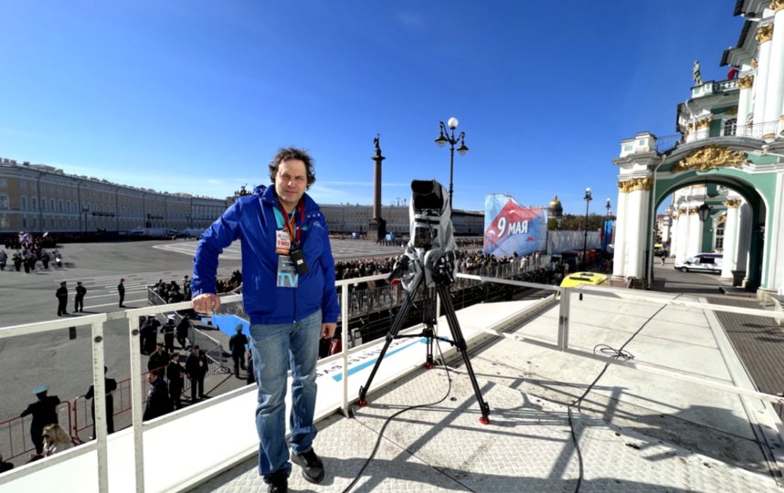 – Сцена может располагаться в разных локациях – например, у Эрмитажа или Главного штаба. Конфигурация сцены может быть совершенно разной, – отмечает Анатолий Ларионов. – От этого зависит, какое количество техники используем. Если на сцене один певец, то можно обойтись малым количеством камер. Если симфонический оркестр, то всё иначе: он потребует от трёх до пяти камер внутри оркестра. Потом мы рассматриваем ситуацию со светом: в какое время суток снимаем, есть ли солнце, какое дополнительное световое оборудование используется. После этого планируем непосредственно саму съёмку, устанавливаем башни под камеры, подиум под "телегу" или кран.