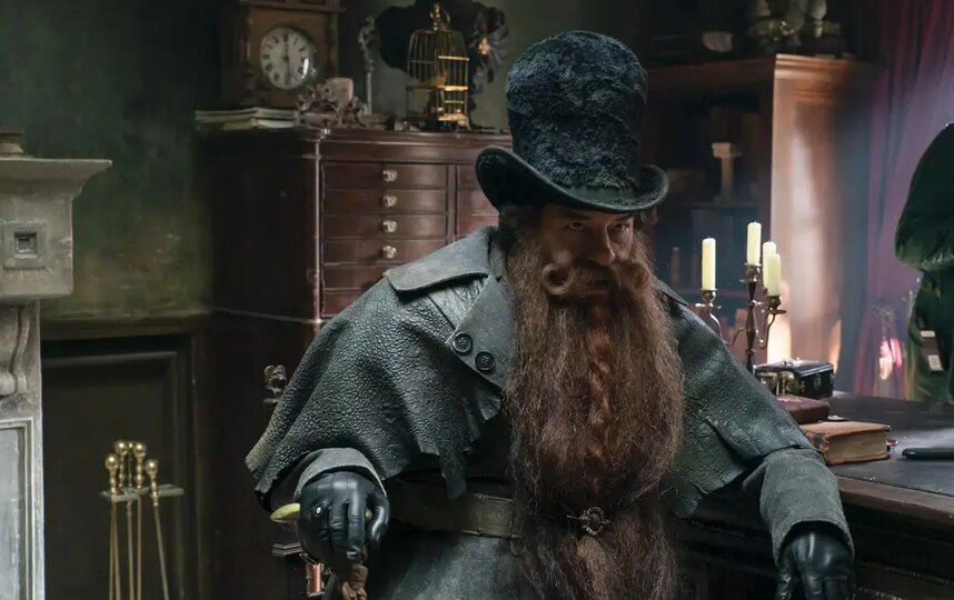 – Работа с бородой была самой сложной задачей: сделать её мягкой и естественно подвижной, найти максимально длинный волос, придумать материала каркаса, чтобы удлинить её, разработать крепление, – рассказывает Metro художник по гриму Мария Тутукина. – В итоге борода сшита из сарлыка (волос яка, максимальная длина ~50 см) и натуральных волос (~1 м). Вес бороды относительно небольшой – около 300 грамм, но обычный гримёрный клей её, конечно, выдержать не мог. Поэтому мы разработали каркас, который крепился к голове и маскировался. Чтобы большая борода гармонировала с лицом, мы укрупнили герою нос, сделали его более остро характерным, добавили густые брови, а для иронии парик сделали лысоватым.