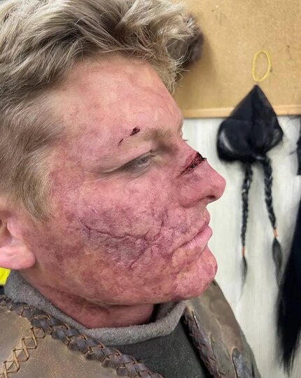 Гримёрам приходилось постоянно рисовать всё новые раны и шрамы герою.