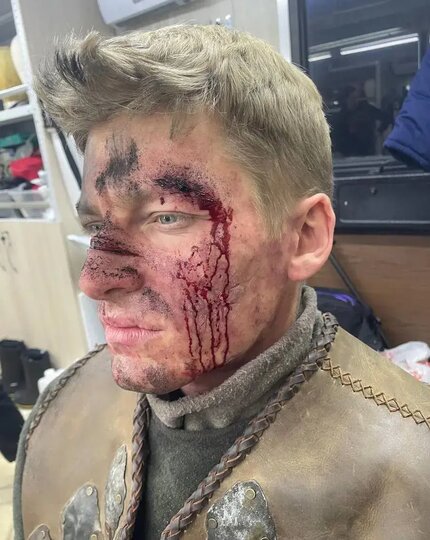 – Если до этого по стыку, сюжету были ранения или сечки, мы их повторяем. Самое тяжёлое – это "посадить" пластику, шрамы, в точное и нужное место, – рассказывает собеседница. – Бывало, что от мороза пластические детали плохо ложились, приходилось больше тратить на это времени. А так как время подготовки ограничено, ты чётко, как часы, должен продумывать свой каждый шаг. Не переборщить цвета, клея. Это очень важно. Иначе деталь не сядет и на площадке будут проблемы. На 30-градусном морозе нет условий, чтобы поправить что-то сложное. А путь до гримёрки и обратно долгий.