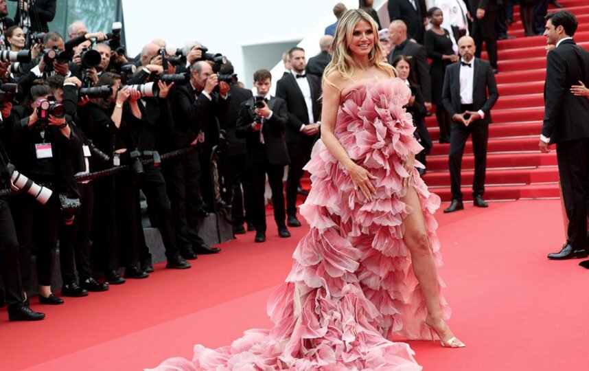 Ещё одной нарушительницей нового правила стала Хайди Клум. Её "цветущее" платье Elie Saab растянулось на три метра позади неё, что наверняка вызвало нервный тик у организаторов мероприятия. Но стоит учесть, что топ-модель славится тем, что редко "попадает" с образами на светских вечерах.