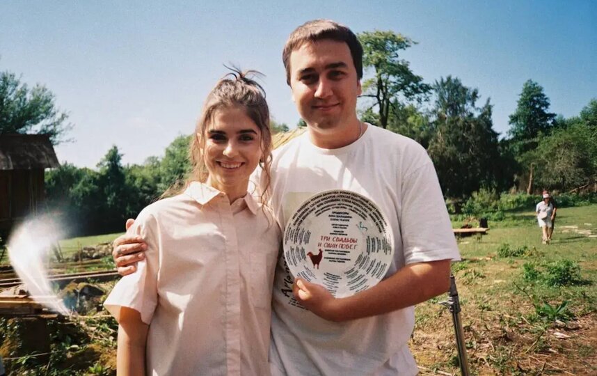 Полина Денисова и режиссёр Кирилл Логинов на съёмках картины "Три свадьбы и один побег".