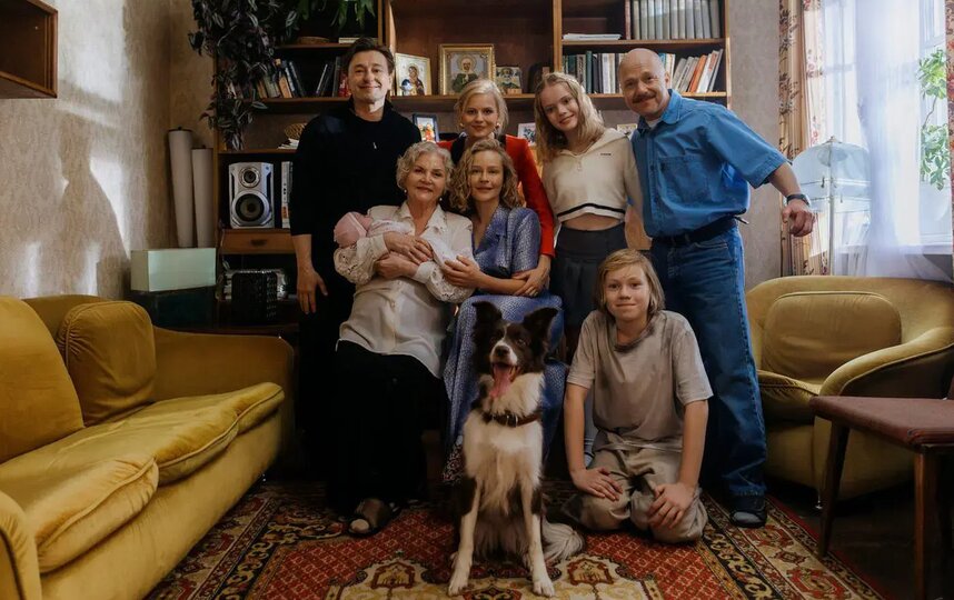 Верхний ряд, слева направо: отец (Сергей Безруков), взрослая сестра (Александра Бортич), девочка Оля, отчим (Евгений Стычкин), средний ряд: мать в возрасте (Ольга Науменко), мать молодая (Юлия Пересильд), нижний ряд: собака Лида (Шани) и Игорь (Данила Харенко).