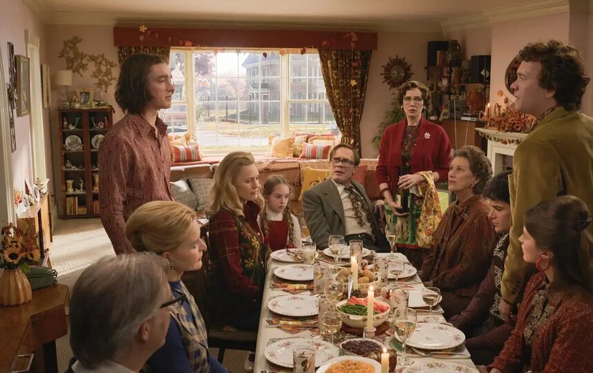 Картина довольно щедра на новаторские (или относительно новые) приёмы, которые в сумме определённо дают ощущение новизны от фильма: кроме радикального омоложения кинозвёзд и белых рамочек, Земекис снял весь фильм с одной точки – это середина первого этажа в доме, отделяющая столовую зону от мягкой, с диванами. Мы всё время видим, как меняется обстановка у больших эркерных окон: старый диван вытесняет новый, вместе со сменой лет мелькает новогодняя ёлка, напротив камина то венчают, то ставят гроб. Герои смеются, плачут, выясняют отношения и сообщают о судьбоносных решениях в гостиной, иногда останавливаясь на границе между ней и кухней и глядя мимо камеры куда-то вглубь дома. И вскоре, кадр за кадром, ты начинаешь видеть, что это не герои смотрят на дом, а он на них, буквально воплощая известное речевое клише – эти стены многое повидали. Об этом говорит и сам Роберт Земекис: