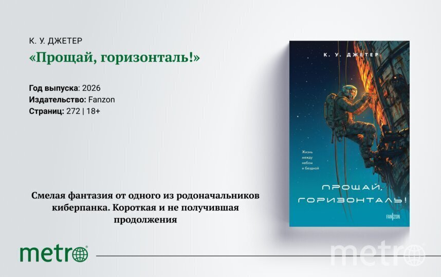 “Прощай, горизонталь!” (1989, на русском выходит впервые) в полной мере доказывает, что “Доктора Аддера” написал тот же самый человек. Возьмите макабрическую мегаструктуру, которой бы позавидовала манга Blame! (1996), только без всепоглощающего мрака, добавьте постапокалиптические племена из “Безумного Макса” и вуаля – новый крепкий боевик перед нами. Или не боевик? Джетер не был бы Джетером, если бы его фантазия на этом успокоилась. Он придумал “газовых” ангелов, вьющихся вокруг Цитадели – другую расу, с которой соприкасаются персонажи, убрал по максимуму насилие (его тут почти нет) и попросту надругался над всеми канонами в характере главного героя. Тот – не очередной кочевник, охотник за головам или сбощик ценных артефактов, а дизайнер, который разрабатывает айдентику для местных кланов, больше похожих на спортивные команды. Они пиарятся, меняются местами в рейтингах, а их акции торгуются на бирже!