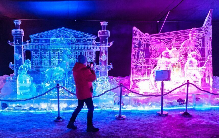 С начала декабря мастера работали в специально оборудованном павильоне, где поддерживается постоянная минусовая температура. Они обработали более 200 тонн чистого речного льда, специально доставленного в Петербург из Мурманской области и Пермского края.
