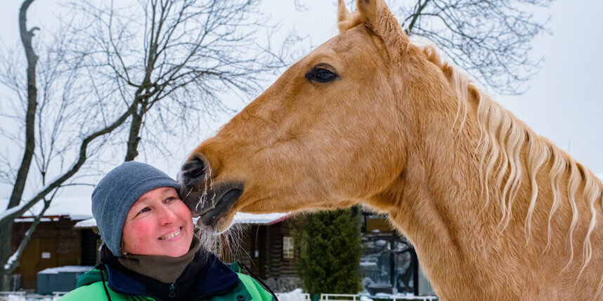 – У неё есть номер "Валенки" под песню в исполнении Людмилы Руслановой, участвует в индийском и испанском танцах, – перечисляет инструктор Анастасия. – Пенелопа – звезда масленичных гуляний, выступает на дне рождения зоопарка, медведицы Хаарчааны и на других праздниках. Каждый день мы занимаемся по 45 минут, это предельная умственная нагрузка для лошади. Если тренироваться дольше, животное перестаёт воспринимать информацию.
