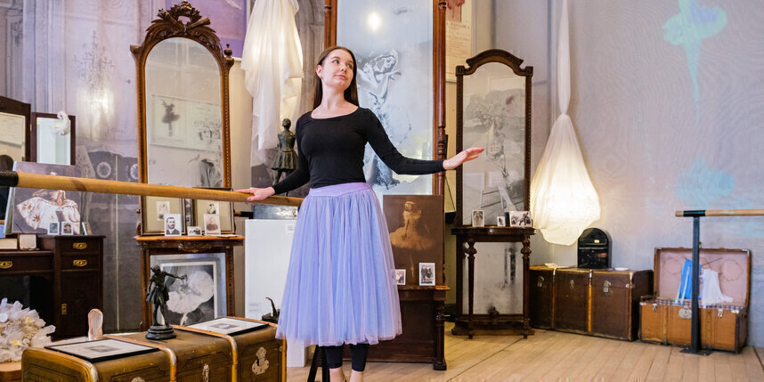 В интерактивном пространстве можно примерить пуанты и постоять у балетного станка.