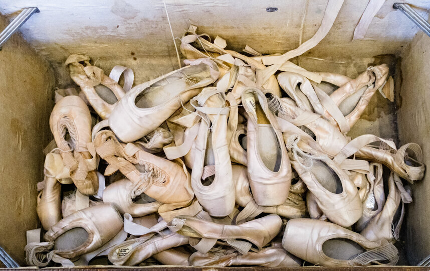 Пуанты приносят в пространство студенты и артисты балета. Туфли можно подобрать по размеру