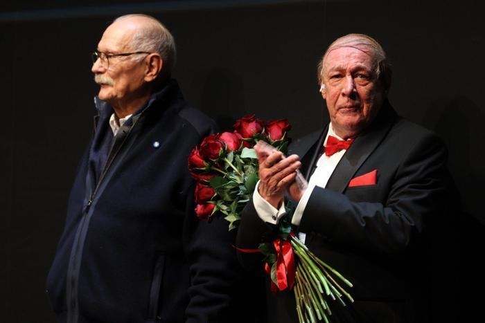 Михаил Ефремов и Никита Михалков на поклонах спектакля "Без свидетелей".