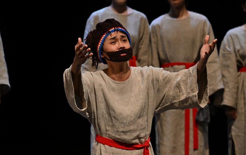 Добавьте к этому множество мелких деталей вроде головных уборов, маски-бороды, ярких шарфов или китайских зонтиков, которые не просто развлекают зрителя, а работают на режиссёрский замысел с математической точностью, и вы получите уникальное произведение театрального искусства, на которое нужно обязательно посмотреть.
