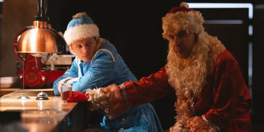 Начальная сцена, где актёры появляются в костюмах Деда Мороза и Снегурочки, устраивая интерактив со зрителями в стиле детских утренников, резко контрастирует с основным мрачным сюжетом постановки. Особенно впечатляет то, что мешок дедушки-волшебника потом превращается в мешок с тем самым трупом.