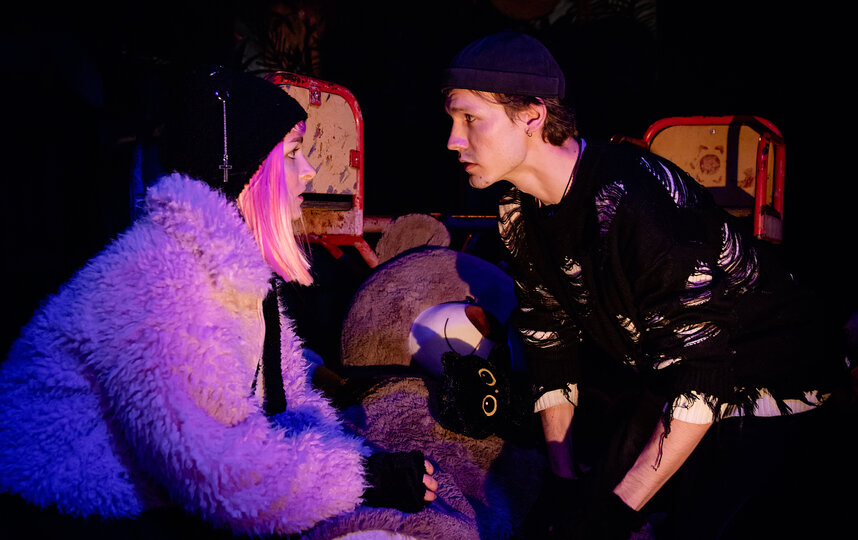 На глазах у зрителей классическая история первой любви превращается в настоящую шекспировскую трагедию. Вместе с главным героем пьесы Егором (Сергей Кривулёв) зритель переживает самые счастливые и несчастные моменты обретения и потери. Влюбленные подростки существуют на сцене не сами по себе – в их пути им помогают два ангела и музыканты. Они ведут Егора по сложной дороге взросления, которая покажется кому-то до боли знакомой, а кому-то совершенно нереальной. Спектакль создан по документальной пьесе молодого драматурга Ланы Гранецкой. Пьеса написана в жанре вербатим – то есть монологи и диалоги героев максимально воспроизводят реальную речь, а сюжет основан на реальных событиях.