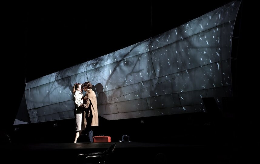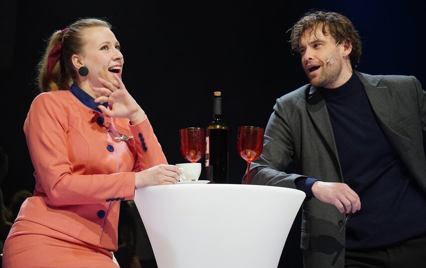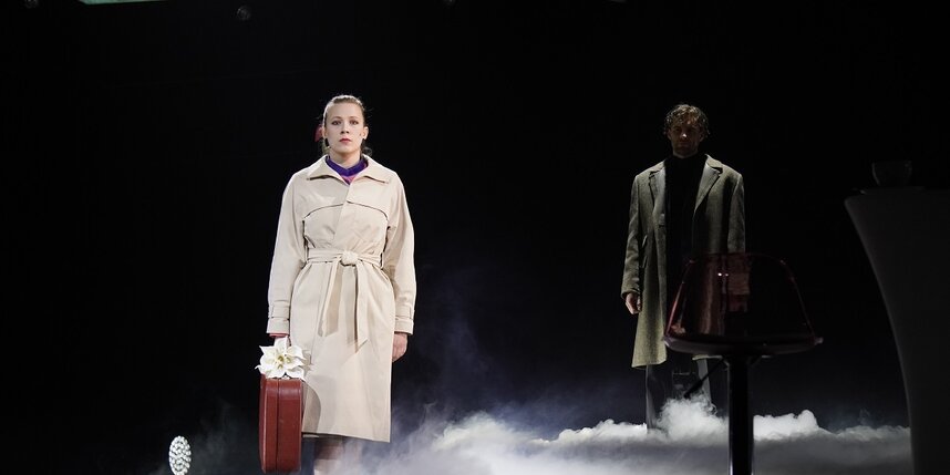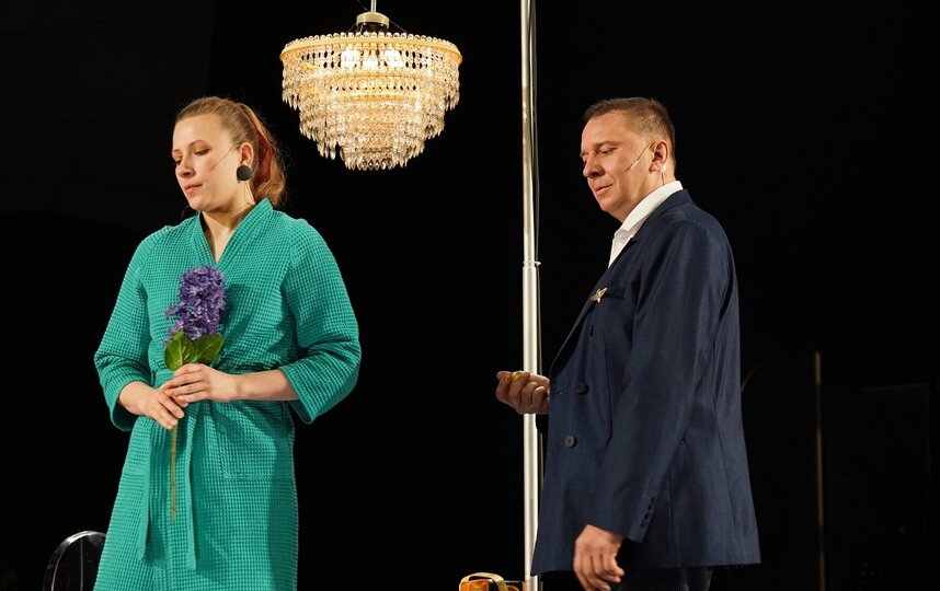 Спектакль "Про любовь" получился абсолютно в духе нашего времени, когда такие слова, как абьюз, нарциссизм и токсичность у всех на слуху. Постановка Александры Мамкаевой, на мой взгляд, это просто учебное пособие о том, что такое нездоровые отношения и стоп-сигналы, после которых надо бежать. Она типичная жертва – мягкая, чуткая, тактичная, всепрощающая, по-детски наивная и, конечно же, с верой в неземную любовь. Он с замашками тирана – самовлюблённый, наглый, к женщинам относится с пренебрежением.