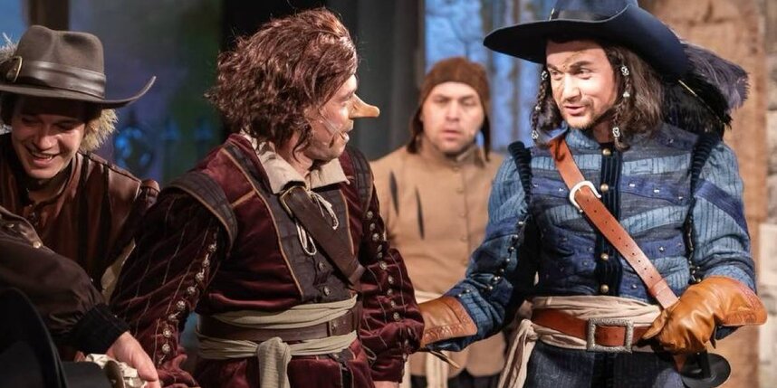 Во время спектакля "Сирано де Бержерак" зрители совершают путешествие в прошлое. Это одна из тех постановок, где сохранили не просто текст автора, но и эпоху. Действие пьесы происходит в 1640 году. Декорации и костюмы выглядят фантастически! Дамы в пышных платьях, кавалеры в шляпах с перьями. Со сцены то веет лоском аристократической жизни, то атмосферой будней простых людей – цветочницы, пекаря и прочих. Каждая смена декораций создавала вау-эффект.