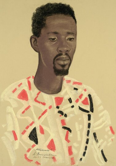 На одном из занятий африканские студенты вместе с российскими преподавателями работали над портретом сенегальской модели.