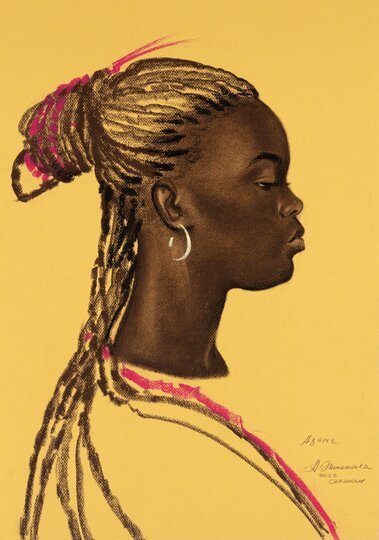 "Я всё время была занята в школе, – продолжает Анастасия. – В сам Дакар или на берег Атлантического океана выбраться удавалось крайне редко. Поэтому в моих африканских сюжетах практически нет пейзажей. Большинство моих работ – о людях, в основном студентах. Я предложила африканским молодым художникам такой вариант: каждый день провожу мастер-класс, рисую портреты моих учеников. Те, кто не позирует, смотрят, как я работаю, задают вопросы. В результате я привезла из Дакара серию портретов молодых сенегальцев – такими, какими их увидела я, их преподаватель. У них очень красивые выразительные лица. Цвет кожи у всех, разумеется, тёмный, но оттенки разные. Поскольку это портреты, мы видим в основном только черты лица. Но какие-то фрагменты национальной одежды, аксессуары, особенные прически тоже попали на мои картины".