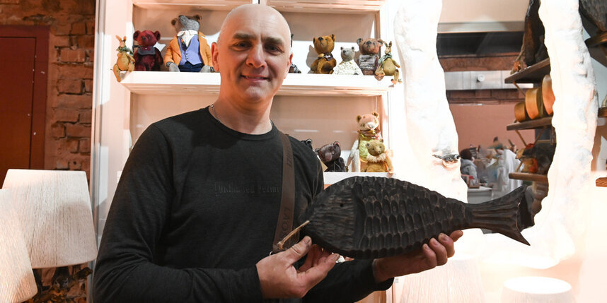 – Я работаю в технике дрифтвуд. Это дерево, которое выброшено на берег моря. Это стабильный материал, полностью пропитанный солёной водой. В нём не заводятся жучки, паучки, он не боится солнца или перемены влажности, – говорит Дмитрий Бохан.